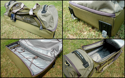 The Odyssey is a large capacity (better watch your cargo weight when flying with this one) rolling duffel with space for everything you'd need for an extended trip and space even for fly rod tubes due to it's long slender shape. A lot of usable space and the empty weight isn't bad either for a structured duffel of this size.